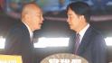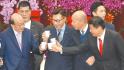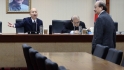 ▲在昨(6)日朝野進行協商時,柯建銘(右一)因不滿韓國瑜(右二)的決定,對韓拍桌、拍倒韓的麥克風。(圖 / 擷取自中天YT)