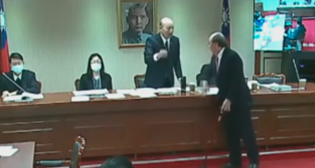 而就在王鴻薇和吳思瑤大吵時,柯建銘起身去和韓國瑜交談,而眼見朝野“立委”吵得不可開交,韓表示“各位官員可以先離席了”,此決定立刻讓柯動怒,他不僅把韓的麥克風拍倒,還對韓拍桌,大喊“有問題要回答”。王鴻薇見狀也怒斥柯建銘“不要去拍主席的桌子”,她并調侃,柯要有點榜樣,“王義川都學壞了,你好好管教王義川啦”。