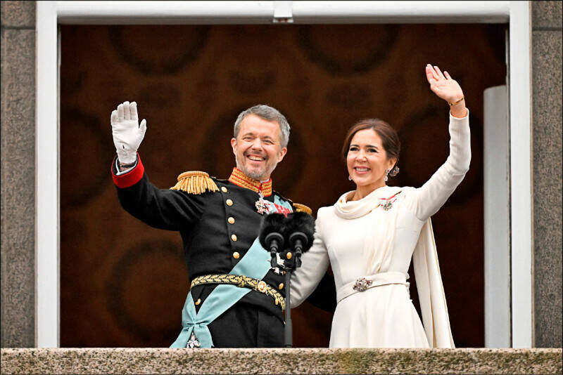 ▲去年1月丹麥國王腓特烈十世登基,與旺皇后瑪麗在克利斯堡皇宮露臺上向群眾致意。路透社