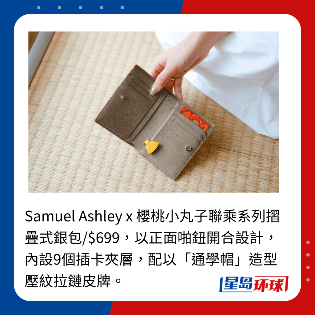 新登場的錢包不乏可愛聯乘作品,準會是童心未泯的女士們首選。香港本地皮革配飾品牌Samuel Ashley,首度伙拍櫻桃小丸子(Chibi Maruko Chan)合推聯乘系列,全以日本著名動畫《櫻桃小丸子》的人氣角色作為圖案,如小丸子、小玉、野口及花輪及永澤同學等,當中 包羅折疊式錢包及首次亮相的全新迷你皮革錢包,采用意大利頭層紋理牛皮制造,綴以日本小學生的“通學帽”造型壓紋拉鏈皮牌,“粉絲”不容錯過。另外,英倫生活品牌Cath Kidston與 Paddington聯乘新系列,其中的長方形拉鏈錢包,內外飾以重新演繹的英國小熊印花,配搭拉鏈口袋及存放現金的插袋,外形與實用兼備。