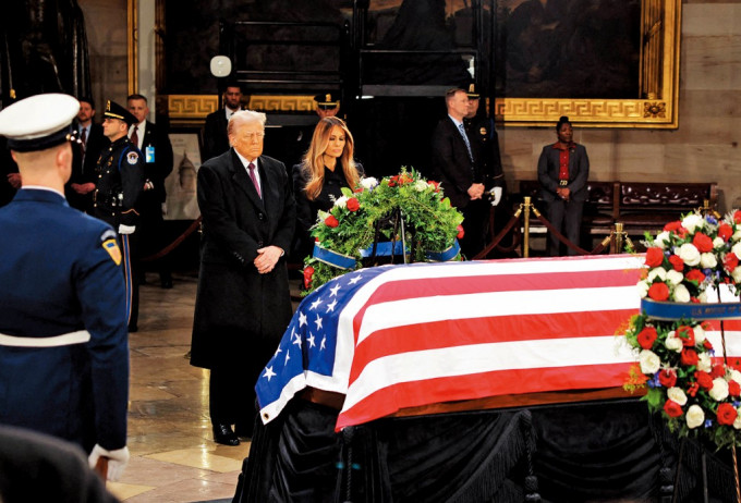 ▲美國前總統卡特的國葬在當地時間周四舉行,候任總統特朗普周三偕同妻子梅拉尼婭前往悼念。