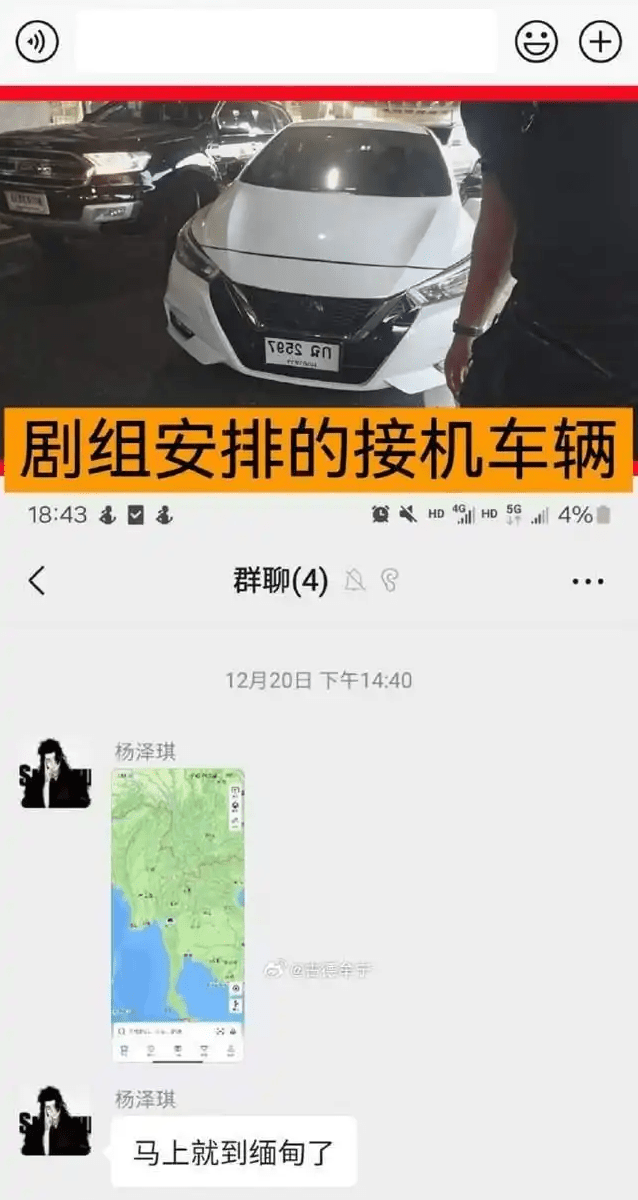 ▲楊澤琪抵泰之后的經過:有劇組安排車輛接送。