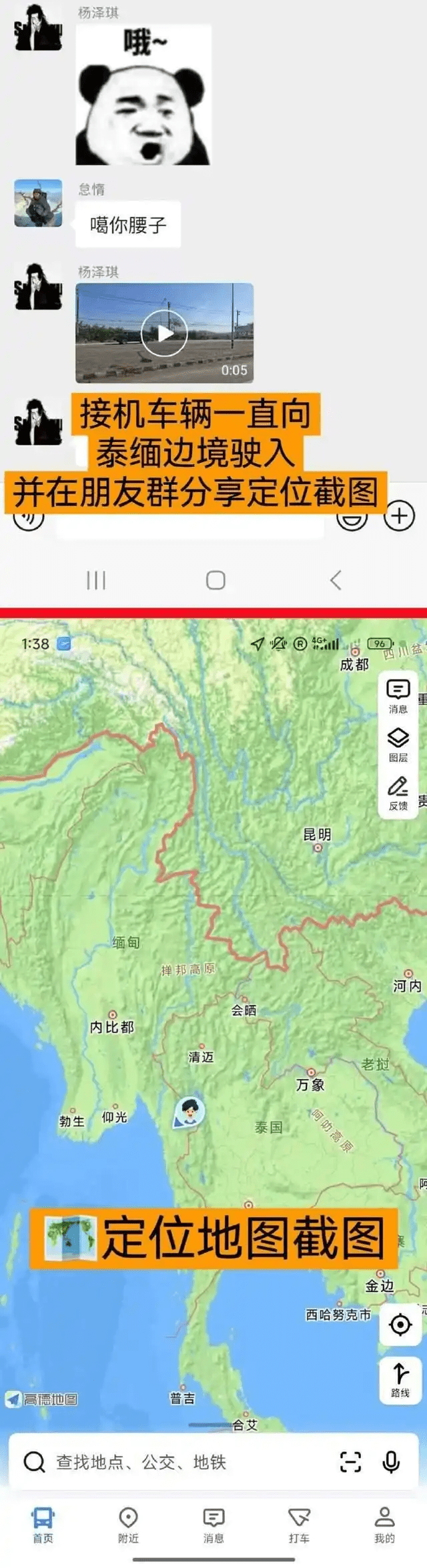 ▲楊澤琪抵泰之后的經過:車輛駛去泰緬邊境,亦是楊澤琪的最后定位。