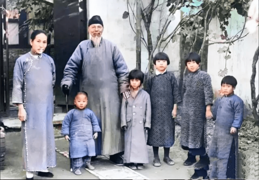 ▲齊白石和妻子兒女在北京的合影,左側妻子胡寶珠。