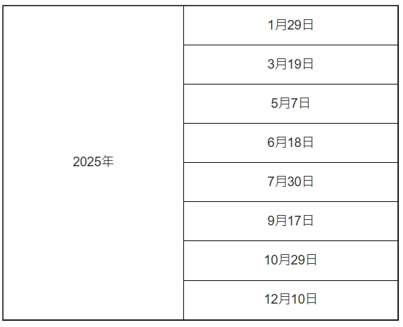 聯儲局議息時間表: