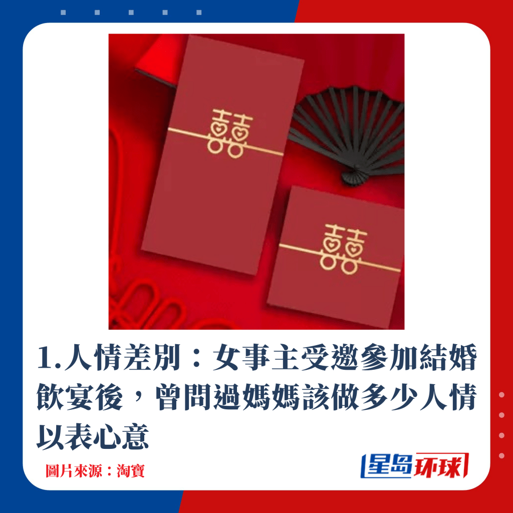 親朋好友結婚成家立室是開心事,為了祝賀一對新人,不少人都會視乎熟稔程度做“人情”,甚至送上結婚禮物。不過,每到封“人情”的時候,總會煩惱到底應該封多少人情才能得體地向新人送上心意。一位內地女生不熟悉香港婚禮人情文化,早前她受邀參加舊同事婚禮時,正煩惱該做多少人情。女事主曾參考母親及港人同事的意見,驚訝于兩地人情竟然可以相差近3倍。