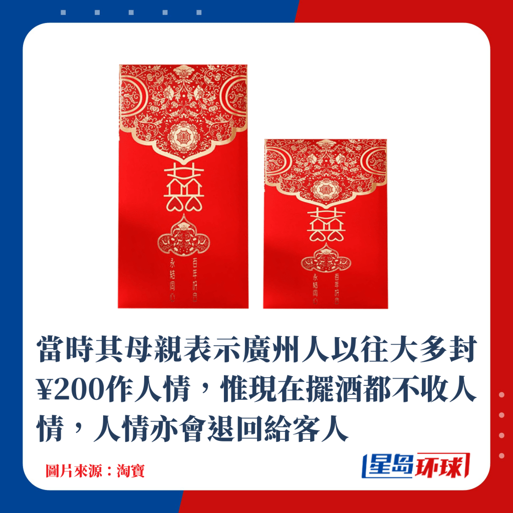 對于女事主驚訝于兩地婚禮文化大不同,特別是人情方面,不少網民對此不以為然,更直言指定價位是基本,酒店擺酒的人情利是會更多,“好像最新人情均價升到$1500了越來越高”、“$1000是最基本”、“看友情,看關系,$1000系普通同事朋友關系”、“老實說宜家hk人情俾$800已經算少,澳門都1200起了”。同時,有內地網民分享最新的婚宴文化,原來內地部分地區沒有收人情的習慣,“主人家把紅包折個角,表示收到了,就返還給客人”,代表客人來喝喜酒已經很給面子,不用給人情了。
