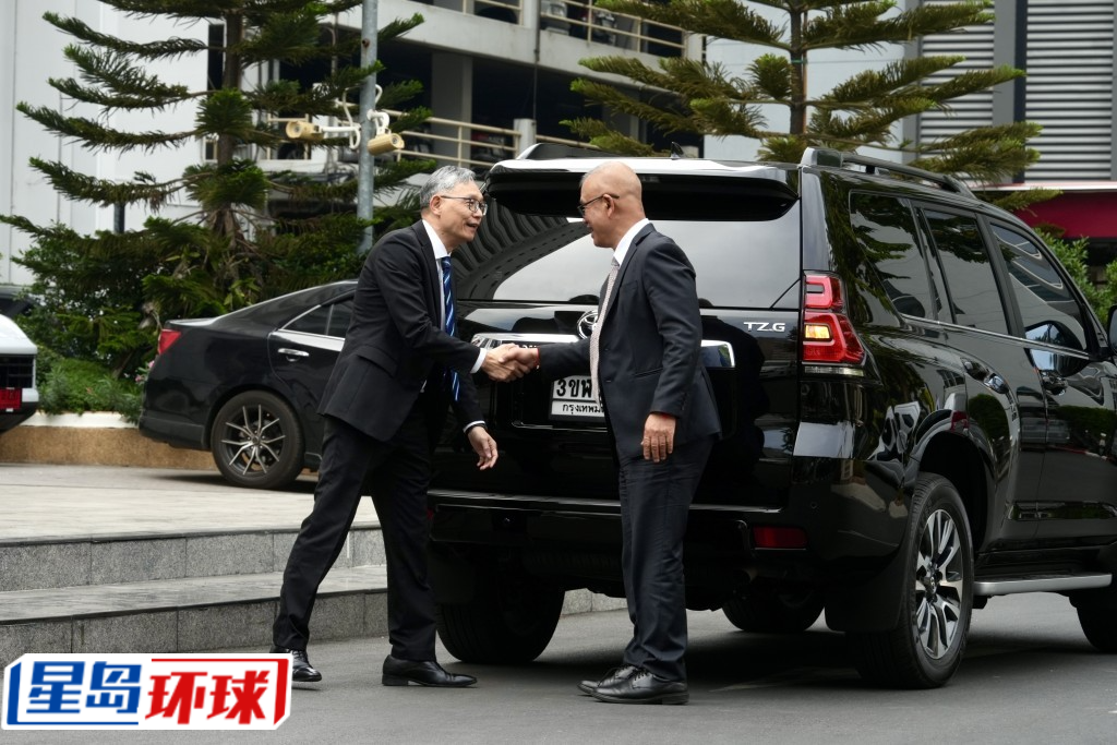 ▲保安局專責小組今早到達泰國皇家警察總部,會見多個當地警方部門。 劉駿軒攝