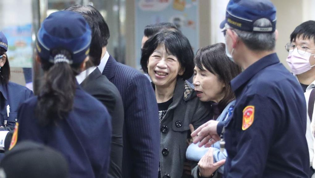 ▲柯文哲的夫人陳佩琪女士(中)前往臺北地院為丈夫辦理交保手續,完成后帶著笑容離開。(中時資料照片)
