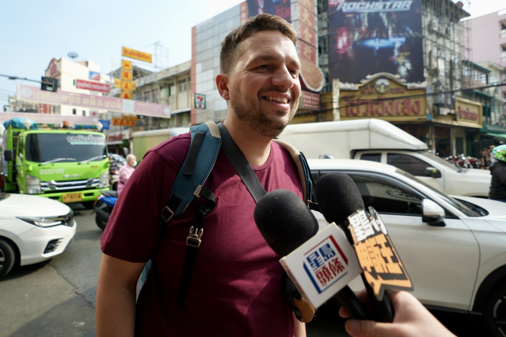 第二次來曼谷、來自奧地利的旅客Andreas認為泰國人很友善、地方也很安全,是歐洲人避寒的好去處。他說“It's very safe so I can go everywhere without the crime”他舉例指兩年前來曼谷時,自己的貴價相機遺留在餐廳半小時后亦無被偷走。他坦言未曾聽過有緬甸詐騙園區一事,更不知道有中國人被送至這些園區。對此,Andreas表示同情,也明白為何他們對泰國旅游有戒心。