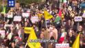 ▲?;鹣⒐己?,支持者相擁慶祝。路透
