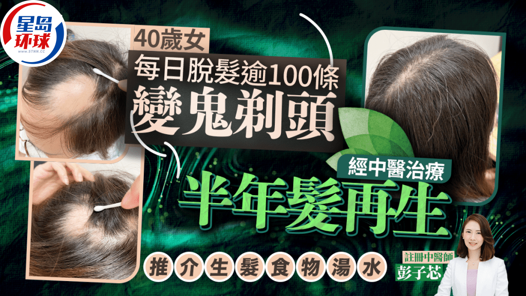 嚴重脫發問題令人感困擾。注冊中醫師彭子芯向《星島》分享斑禿病例指,香港一名40多歲的女子,持續脫發長達一年,每日掉發超過100條,更因此出現情緒問題。后來經過大半年的中醫治療,重新長出黑發,情況大有改善。究竟哪些人容易有斑禿問題?吃什么生發?