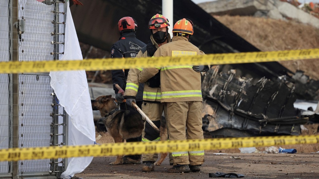 ▲消防員在濟州航空空難事故現場搜救。 路透社