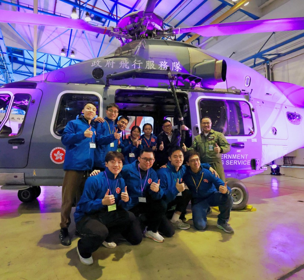 ▲鄧炳強今早聯同一批來自本地、深圳大學及澳門的保安局青年領袖到政府飛行服務隊總部。鄧炳強FB