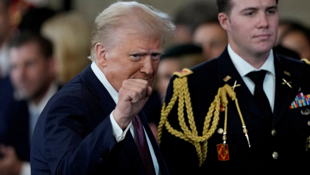 ▲2025年1月20日,美國總統特朗普總統于國會大廈大廳總統就職典禮上做出手勢。(路透社)
