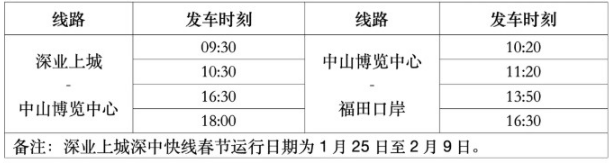 2. 深業上城至中山博覽中心深中快線 春節期間每日運營