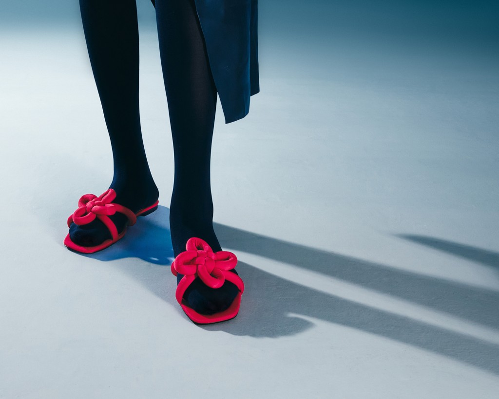 ▲Jade中國結紅色平底拖鞋。 $ 399/Charles&Keith