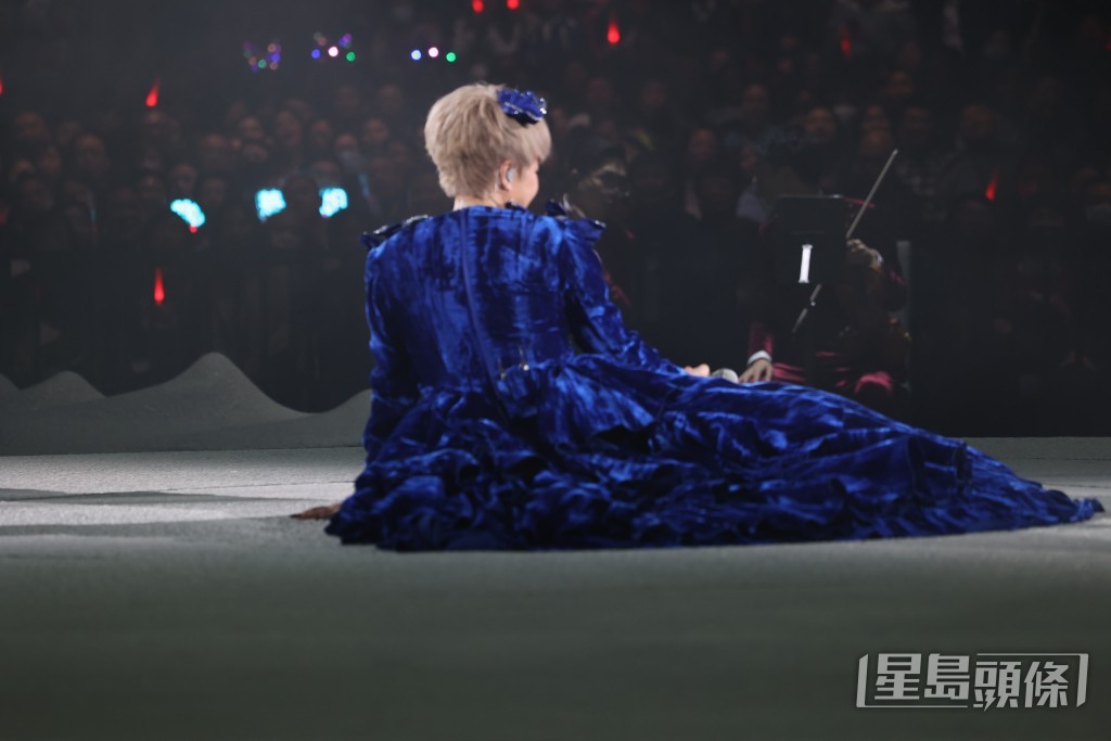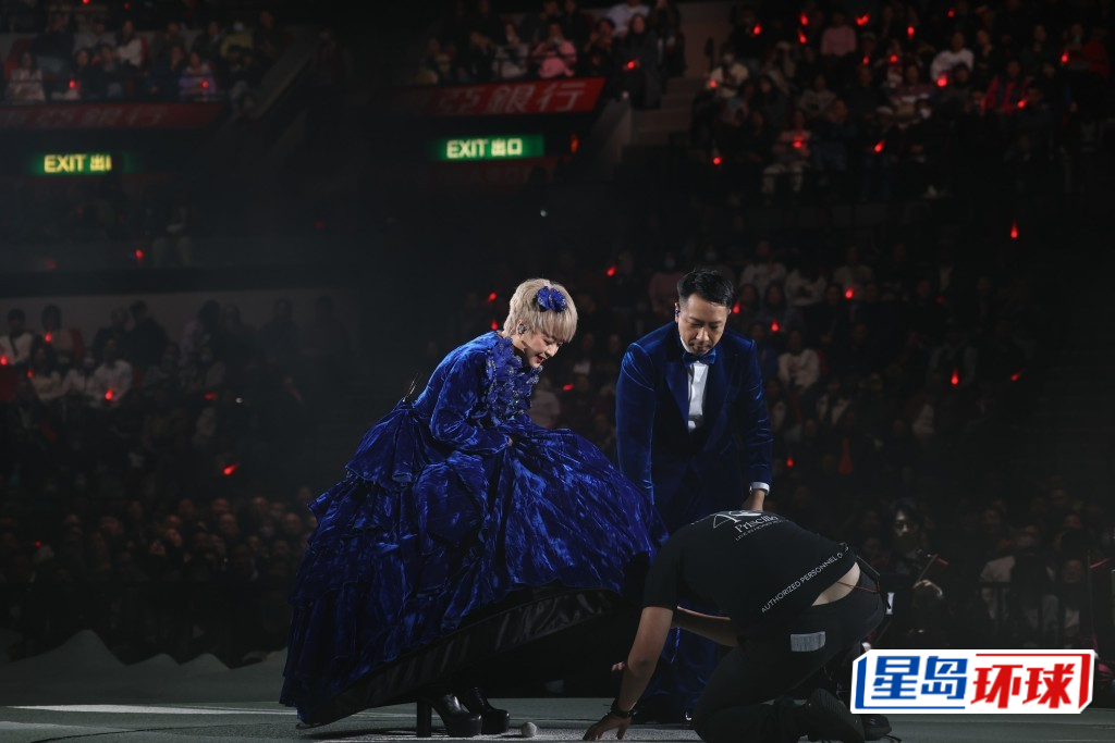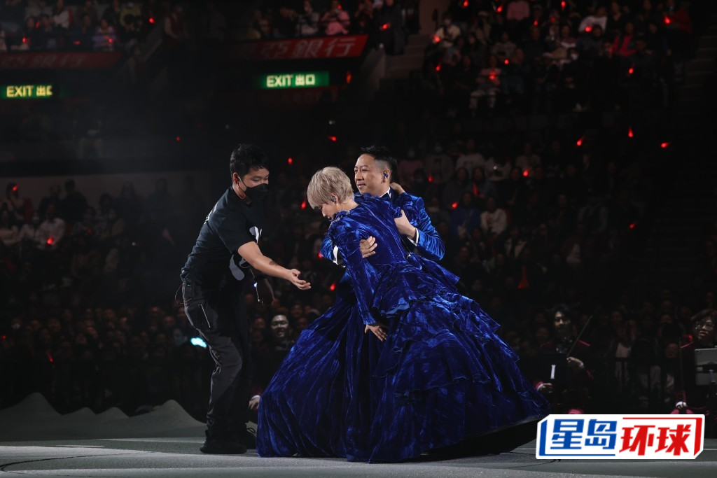 陳慧嫻在紅館舉行合共六場的“The Fabulous 40 陳慧嫻演唱會”昨晚(21日)正式開鑼,陳慧嫻唱畢一曲《明日有明天》時,行回臺中央期間,可能因鞋太高及裙子太大,令陳慧嫻不小心跌倒,音樂總監何秉舜(何炳)見狀即跑到臺中央打算扶起陳慧嫻。