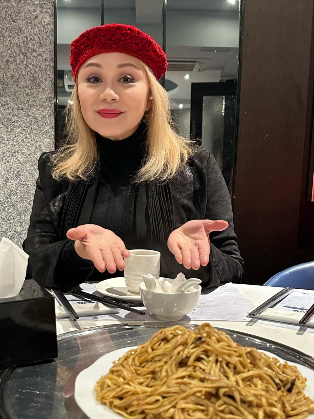 林建明當晚穿上紅底報紙款式印花西裝,襯上近年所染的一頭金發,林建明更將頭發吹曲,看起來與美國前總統特朗普(Donald Trump,又譯川普),日前就任美國第47任總統就職典禮的發型差不多,極之搶鏡。林建明1973年在麗的電視主辦的沙灘小姐中奪冠,并曾拍攝過多部電影,當中《社女》的剃光頭造型令人驚艷。林建明其后加入TVB《歡樂今宵》,與盧海鵬演出趣劇《蝦仔嗲哋》成為經典,林建明后期轉投亞視主持節目《今日睇真D》,同樣是代表作。不過,林建明2001年主持節目《明SHOW俾你睇》時,不幸被佈景板擊中頭部,因為事前已接下另一單主持工作,故她稍作休息過后就復工,之后不幸開始出現情緒問題,后來證實患上抑郁癥,翌年就淡出娛樂圈。林建明因工傷息影七年,卻因雷曼事件導致損失2千多萬元,當年她更出席雷曼苦主游行,承認自己欠債?,F時林建明積極行善,精神亦十分不俗。