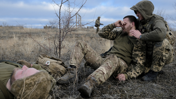 ▲2025年1月21日,烏克蘭第81獨立傘兵旅在靠近前線謝韋爾斯克附近訓練期間休息。(路透社)