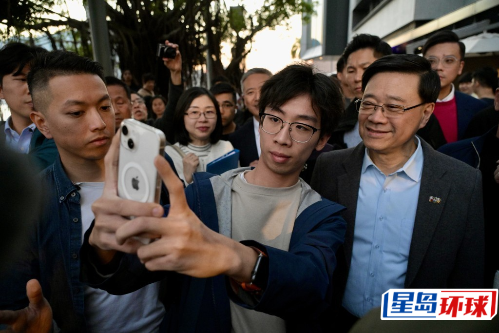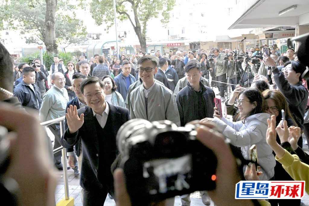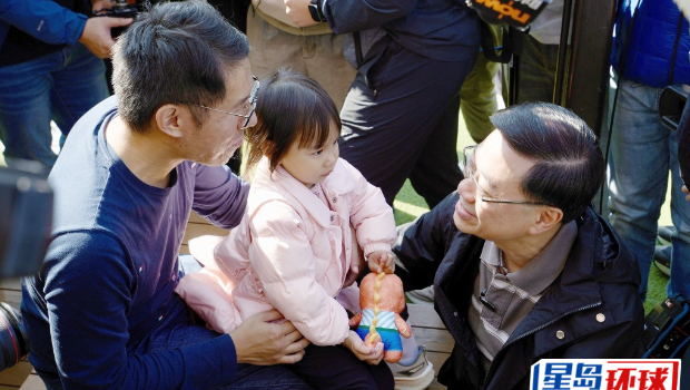 行政長官李家超今日(25日)與民政及青年事務局局長麥美娟率領關愛隊前往何文田。有小朋友大贊李家超“好靚仔”。