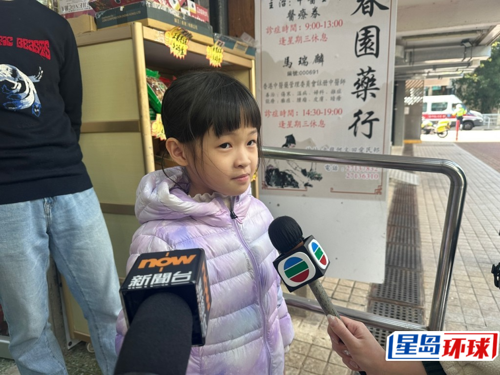 就讀小學一年級的戴小朋友,今日陪同爸爸在藥行“看鋪”。她表示,李家超在經過時與她握手,并祝她“一切順利”,又指李家超“好靚仔”。
