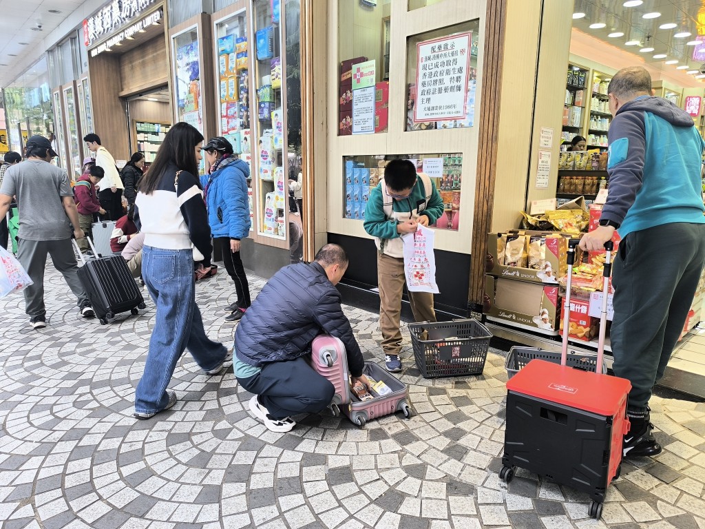 該間超市經理透露,近期人流增多,不少是帶同行李箱前來,加上臨近歲晚,不少人辦年貨,營業額比去年同期最少增加3成。