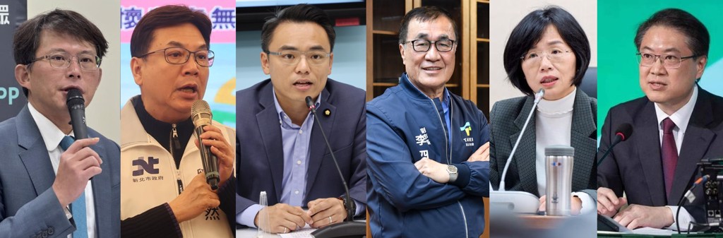 ▲2026新北市長選舉可能人選,左起為民眾黨代理主席黃國昌、國民黨新北市副市長劉和然、國民黨“立委”洪孟楷、國民黨臺北市副市長李四川、民進黨“立委”蘇巧慧、民進黨秘書長林右昌。合成圖