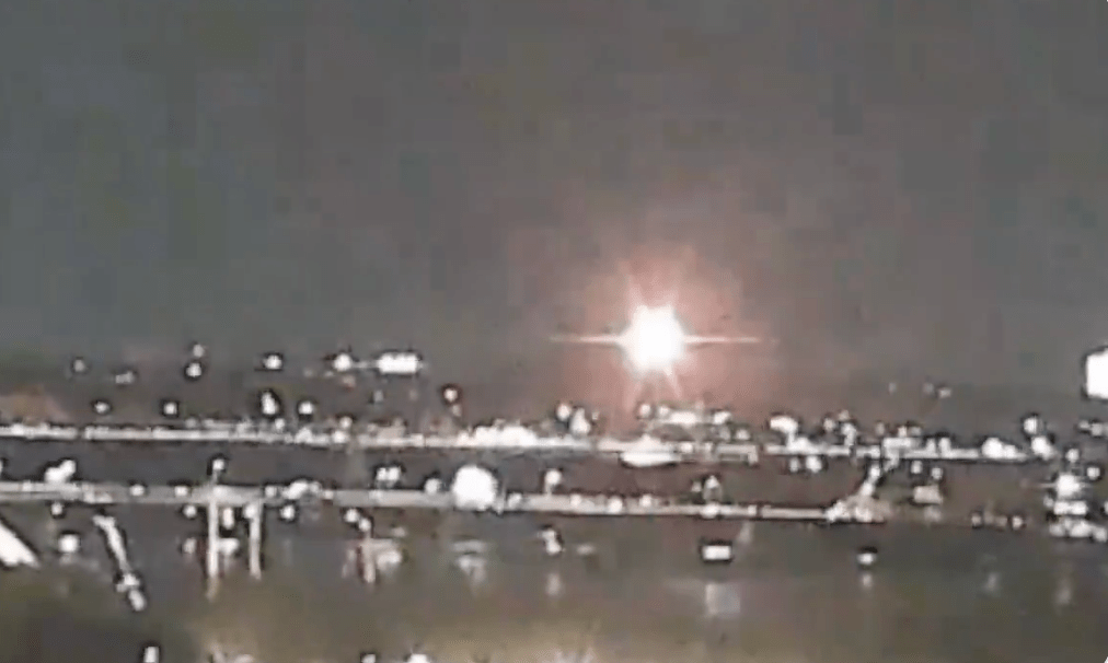 ▲撞機一刻,夜空中出現一火球。