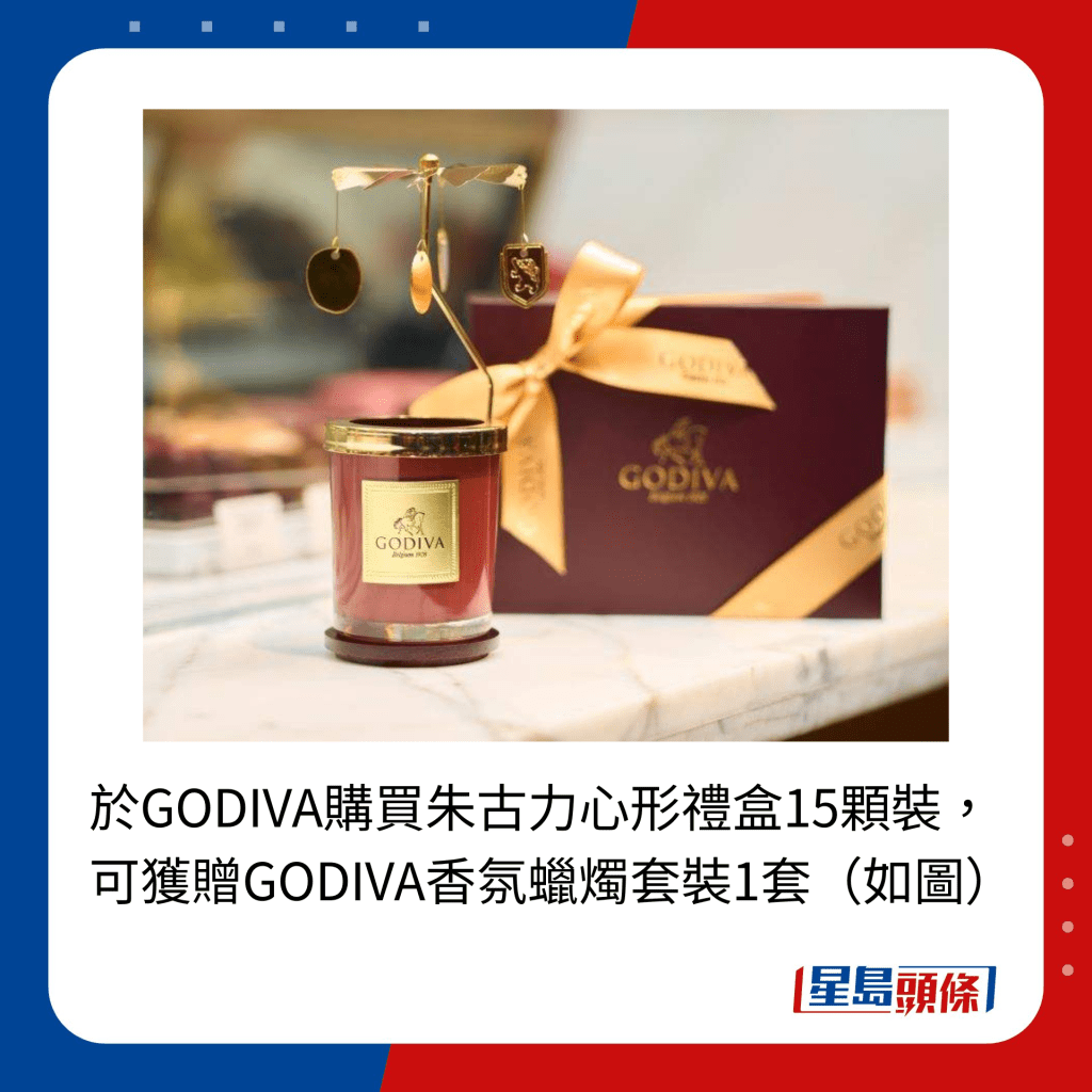 ▲于GODIVA購買朱古力心形禮盒15顆裝,可獲贈GODIVA香氛蠟燭套裝1套(如圖)。
