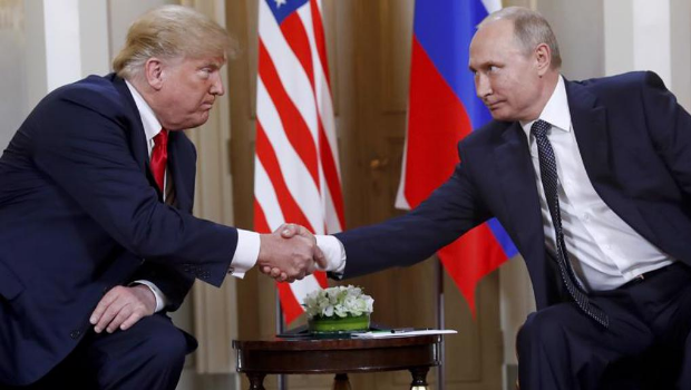 ▲美國總統特朗普12日表示,將在沙烏地阿拉伯與俄羅斯總統普京會晤,推動終止俄烏戰爭。 圖為2018年兩人在赫爾辛基會面。 (美聯社資料照)