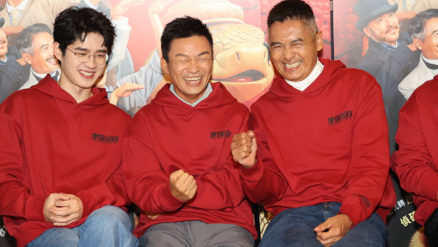 ▲左起劉昊然、王寶強及周潤發。
