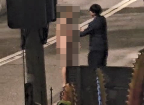 ▲一名全身赤裸、僅穿拖鞋的長發女子站在荃灣圣公會麥理浩夫人中心對出老圍路,與一名男子發生爭執。 網上片段截圖