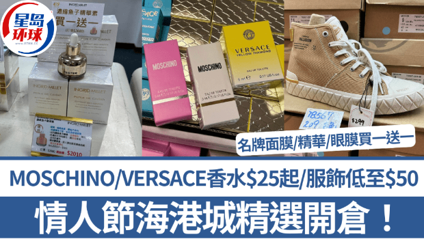 情人節,大家為另一半準備好驚喜禮物了嗎?尖沙咀海港城展銷集由即日起至2月17日,舉行情人節精選開倉,MOSCHINO、VERSACE香水$25起!名牌護膚品牌INGRID MILLET的面膜、精華液、潤手霜正買一送一,連療程也有特別優惠,送給另一半當禮物亦非常合適!此外,現場的服飾、配件包括Champion、PALLADIUM、Doughnut等低至$50,即睇開倉詳情!