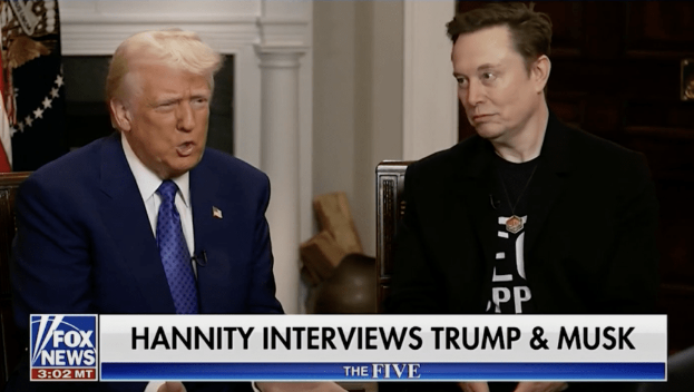 ▲特朗普與馬斯克一起現身周六播出的霍士新聞(Fox News)訪問中。