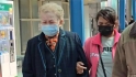 ▲前民眾黨主席柯文哲父親柯承發病逝,18日上午柯文哲妹妹柯美蘭拄著拐杖現身。中時