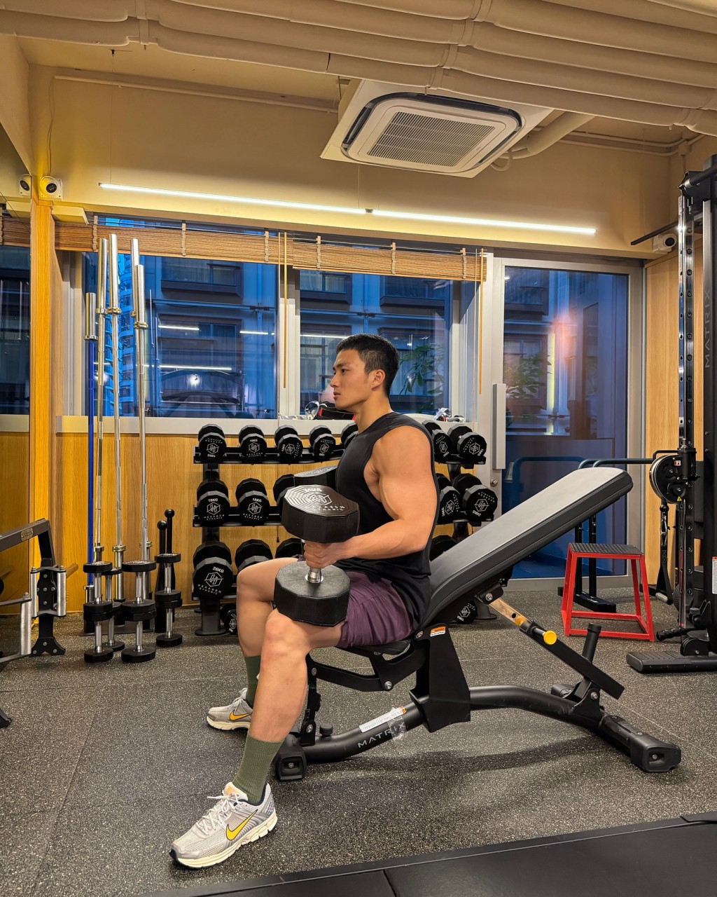 ▲周嘉洛去年在IG分享健身相,見他舉起啞鈴時二頭肌青筋暴現。