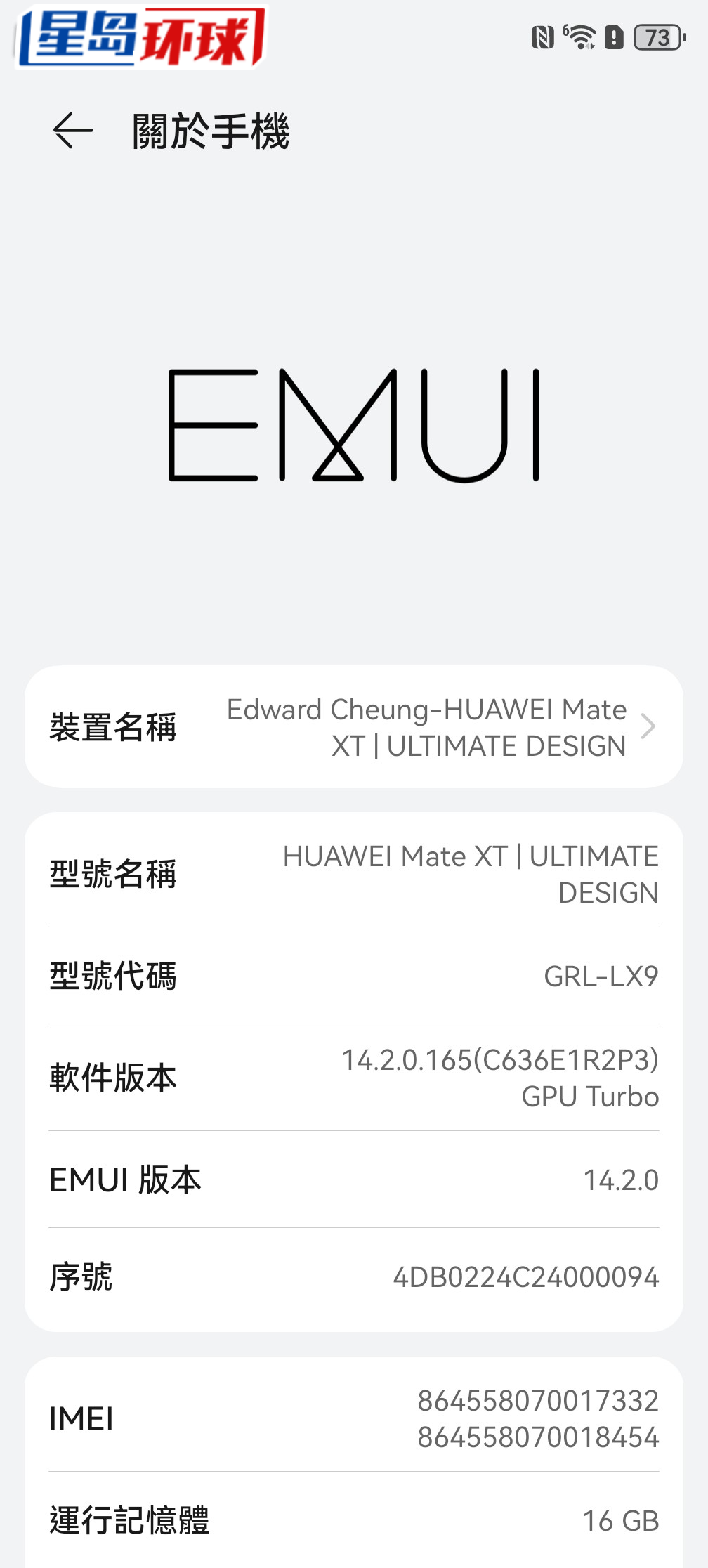▲Mate XT運行EMUI14.2操作系統,有別內地版的HarmonyOS。