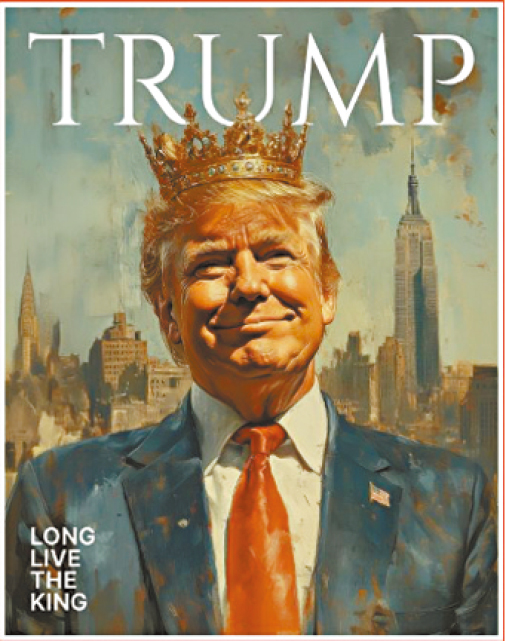 白宮除了轉發帖文外,更在兩大平臺X和Instagram發布插畫,參考《時代》雜志的封面設計,但將刊物名稱改為“特朗普”,并配上“國王萬歲”的標題。