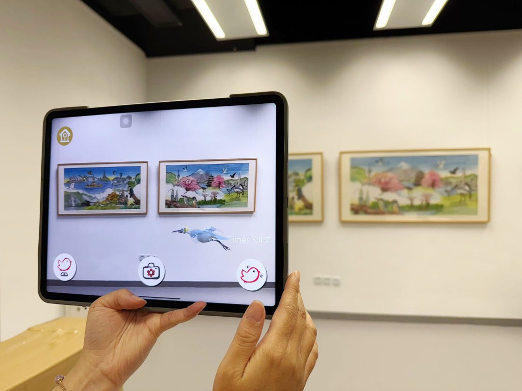 ▲透過掃描展覽的二維碼,即可與親自創作的雀鳥合照。