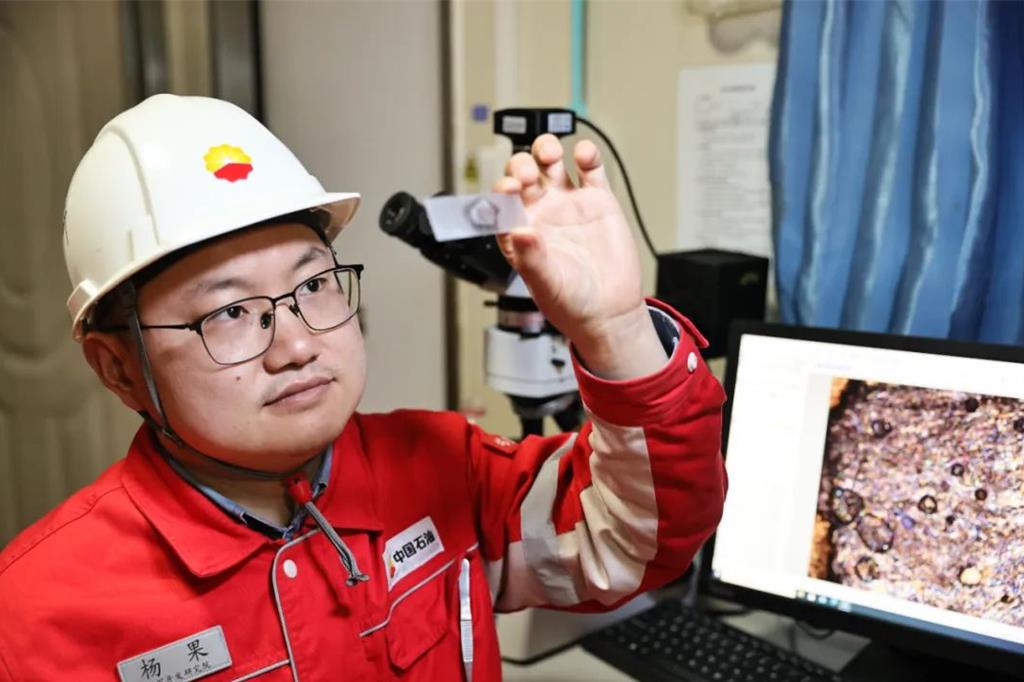 ▲圖為塔里木油田勘探開發研究院基礎研究部觀察巖屑磨出來的巖石薄片。(新疆發布)