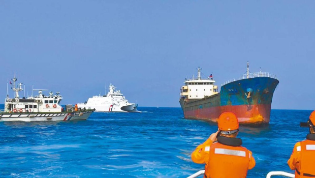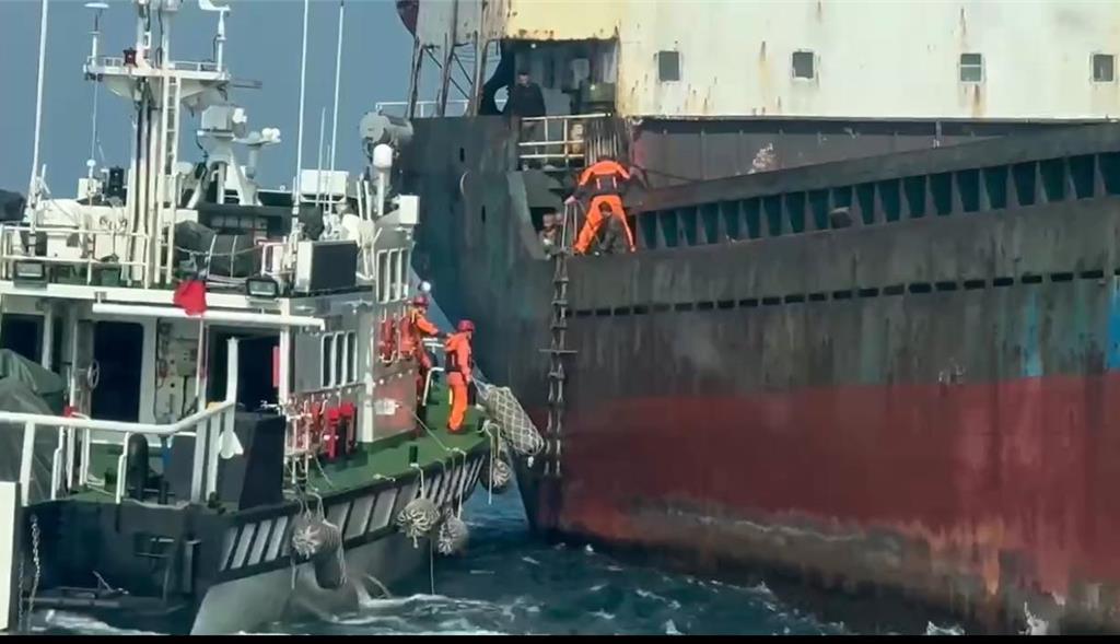 ▲臺灣“海巡署”人員登上“宏泰”貨輪調查。中時
