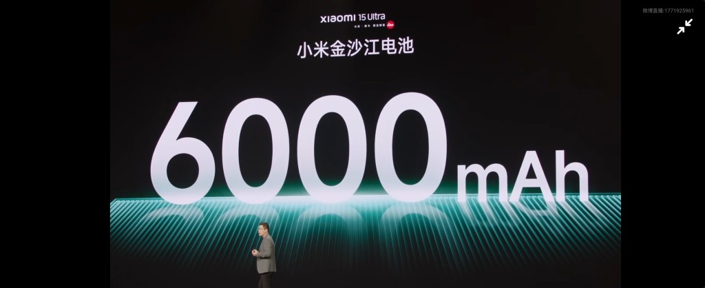 ▲小米15 Ultra電池容量進一步增至6,000毫安。