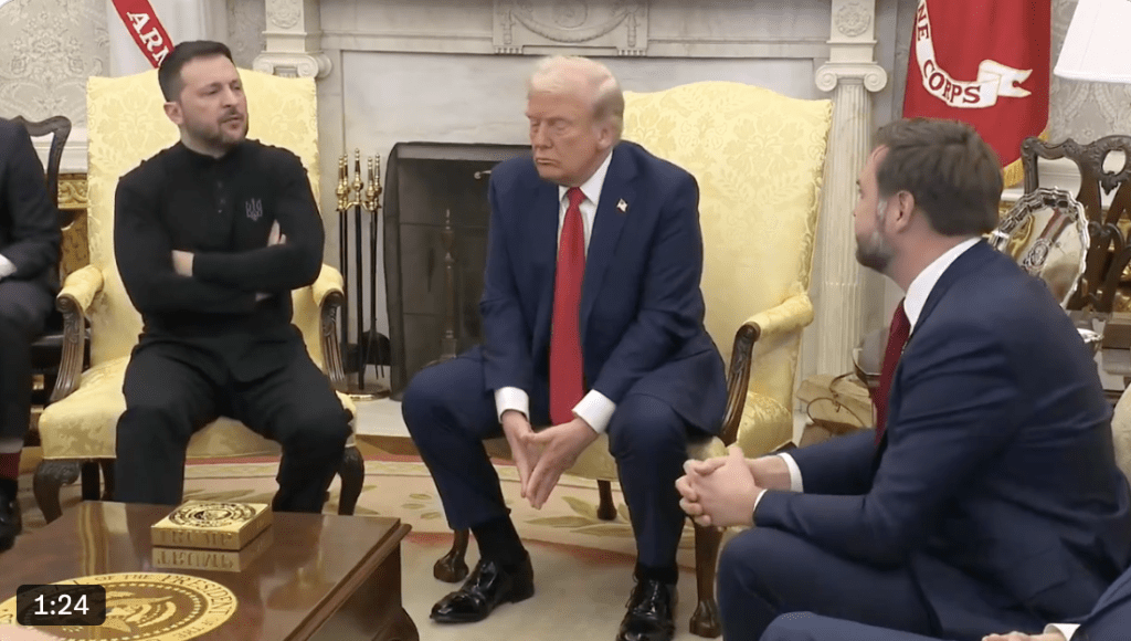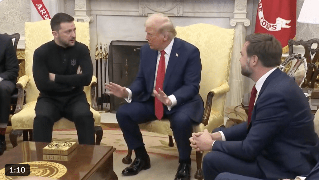 美國總統特朗普于當地周五在白宮會晤烏克蘭總統澤連斯基,原定準備雙方簽署象征兩國合作的礦產協議,惟最終竟演變成罵戰,不歡而散。在橢圓形辦公室會談期間,澤連斯基沉不住氣與美國副總統萬斯爭辯,特朗普見狀“發火”,當眾批評澤連斯基不尊重美國,而且正在“拿第三次世界大戰來下注賭”。會面結束后,澤連斯基獨自步出白宮離開,原本安排的聯合記者會和礦產簽署儀式取消。