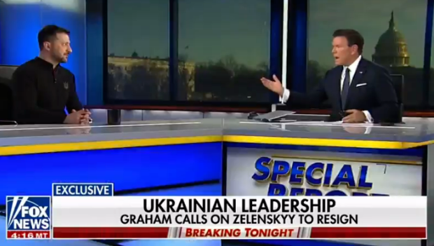 ▲當地時間2月28日,澤連斯基(左)接受美國??怂剐侣勁_采訪。圖源:美媒
