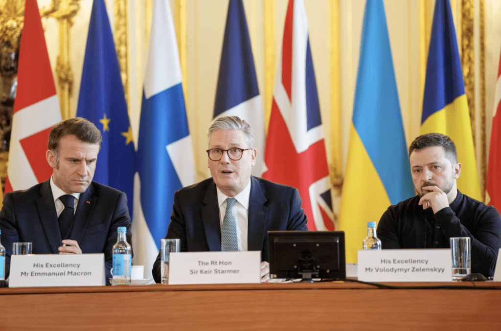▲2025年3月2日,法國總統馬克龍、英國首相斯塔默和烏克蘭總統澤連斯基在英國倫敦蘭卡斯特宮出席歐洲領導人峰會,討論歐洲安全和烏克蘭問題。路透社