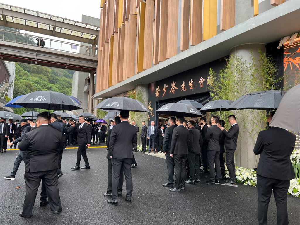 雖然竹聯幫內是先約至各堂口僅能派5人參加,甚至各地分會都被排除在外,但告別式會場仍涌進千名黑衣人到場送行幫主最后一程,現場一片“黑色傘?!?,場面相當隆重。