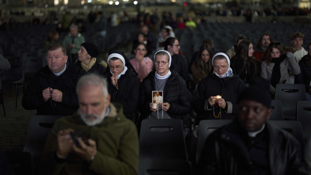 2月24日以來,每天晚上信徒都聚集在羅馬夜空下,在圣伯多祿廣場祈求教宗康復,教宗希望他本人也能在現場與信徒相聚。