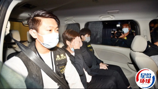 ▲其中一名女被告(掩面)案發被警方帶署調查。資料圖片