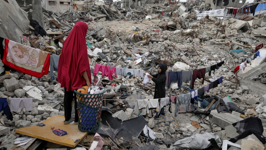 ▲流離失所的加沙人在廢墟中迎接穆斯林齋月。 美聯社